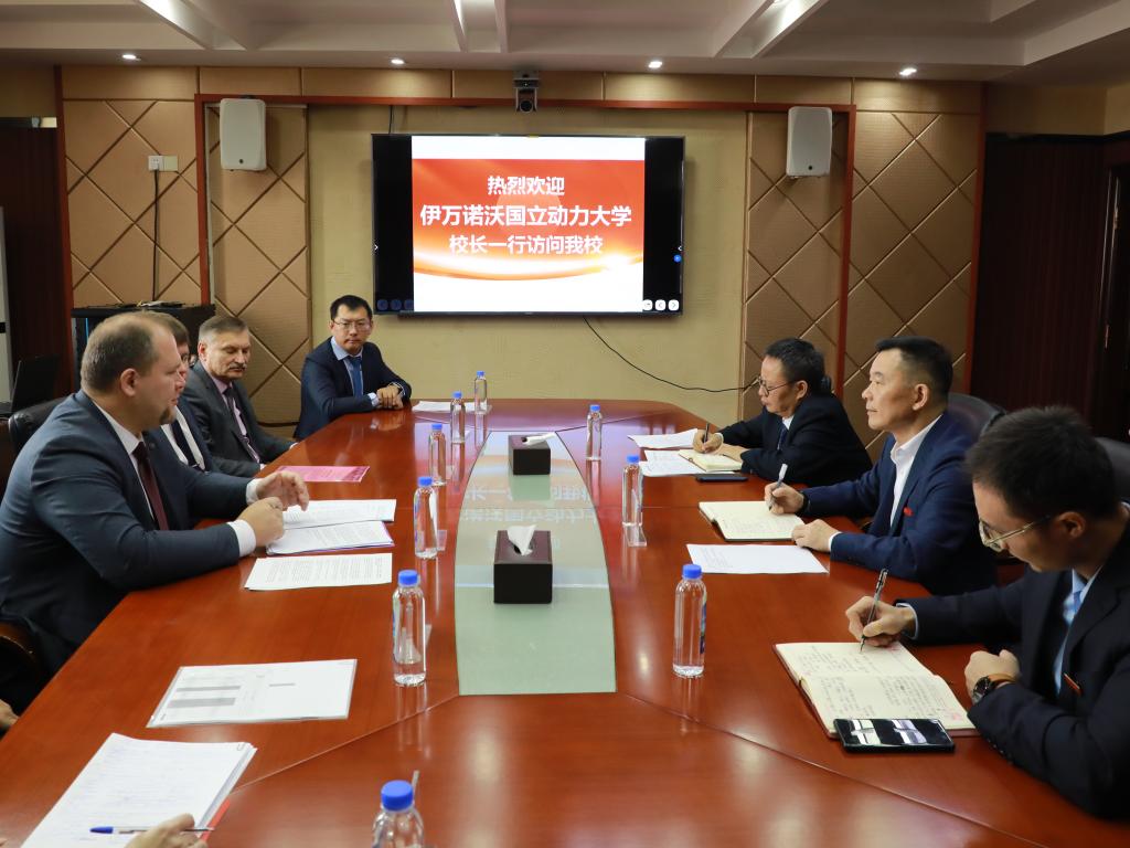 10月23日,俄罗斯伊万诺沃国立动力大学校长列杜霍夫斯基·格里戈尔·瓦西里耶维奇率代表团来校访问交流。我校党委书记曹执令,党委副书记、校长曾广胜分别与代表团一行举行会谈。俄罗斯伊万诺沃国立动力大学副校长伊利亚·苏雷年科夫,我校副校长柳星出席会谈。